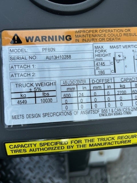2025 UNICARRIERS PF60N 6000 LB PNEUMATIC FORKLIFT